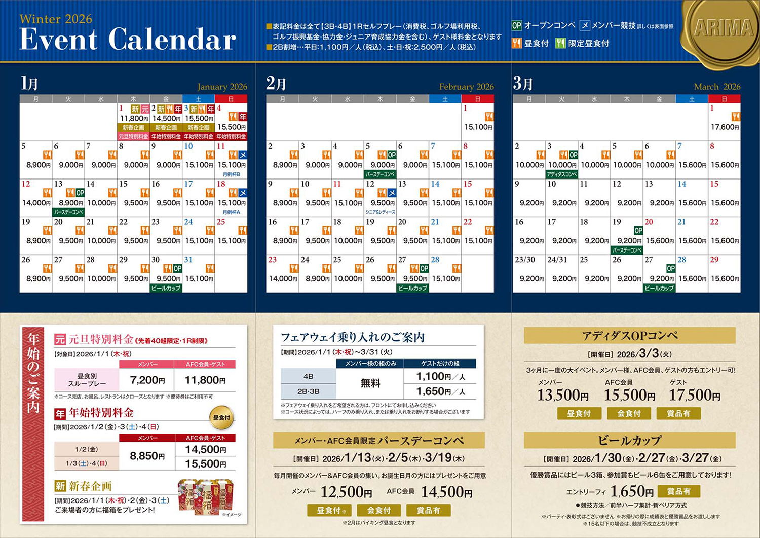 お得なプランやオープンコンペなどのイベント盛りだくさん!