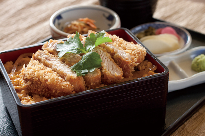 だし香る卵とじの上に揚げたてのサクサクカツを重ねたふじのくにポークの旨みを味わえるかつ重です。