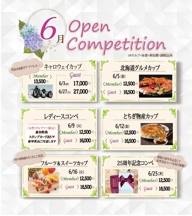 | 25周年記念コンペ | 6月25日(木) | ○ |