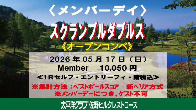 | 料金 | ■TC・TA会員: 10,050円 (1Rセルフ・エントリーフィ・諸税込) |