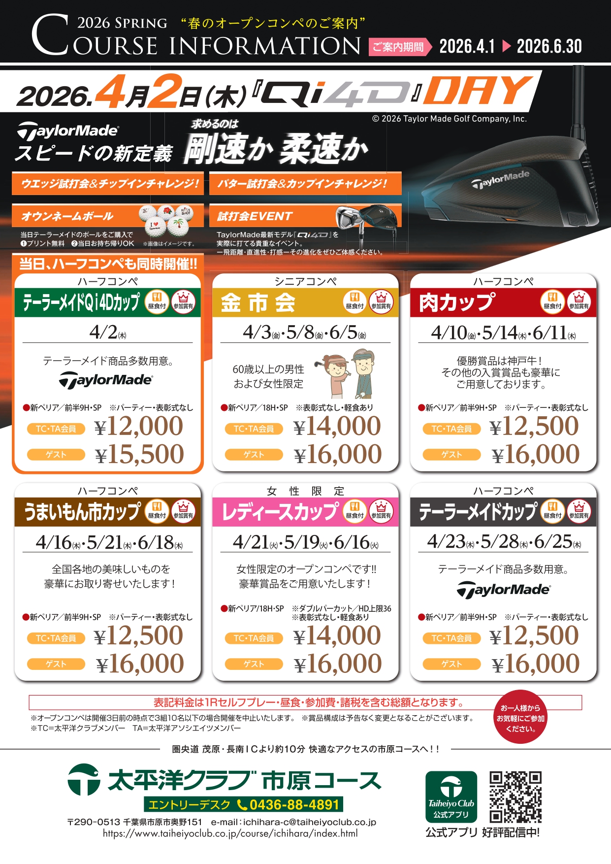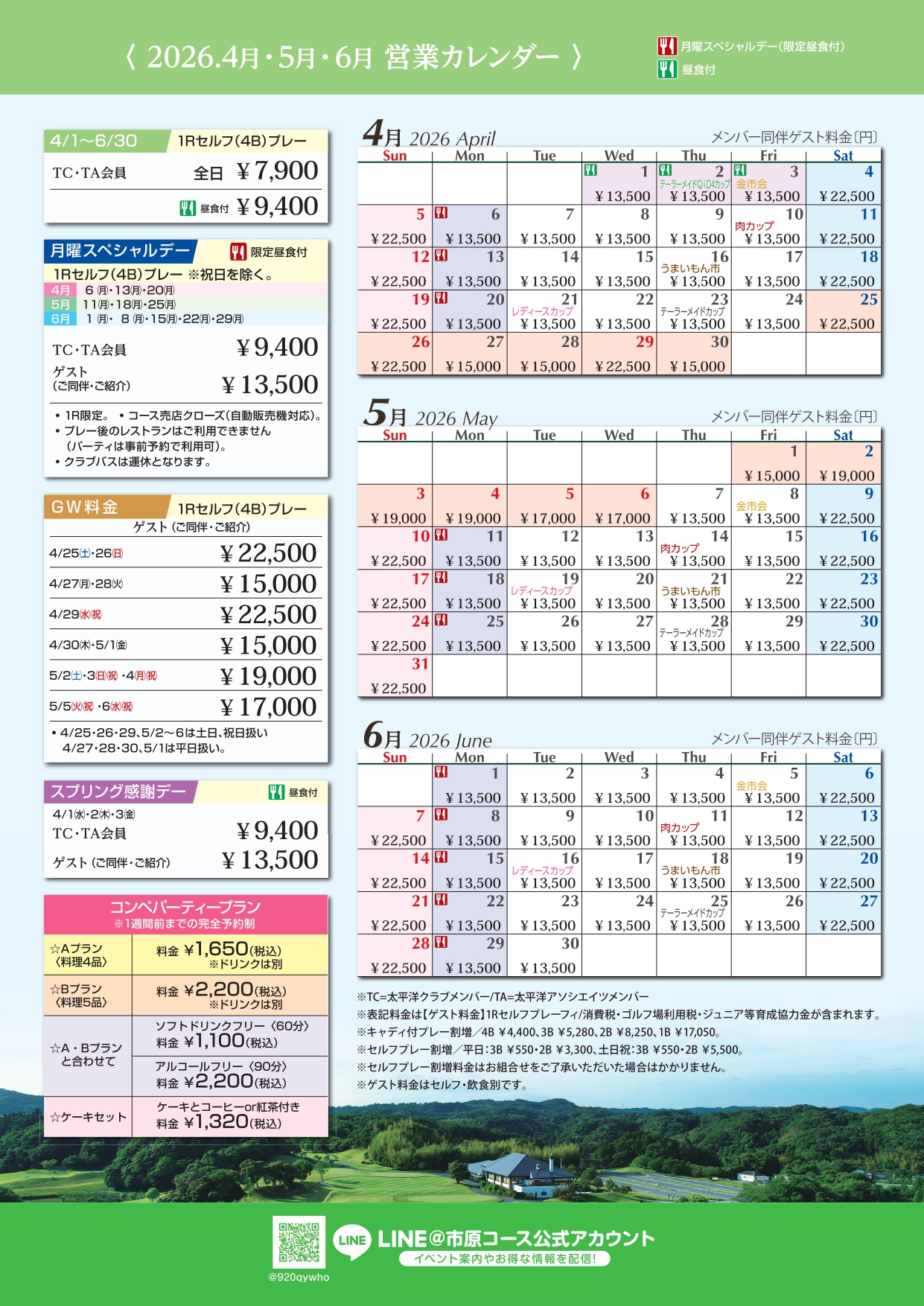 春のオープンコンペのご案内 / 4-6月営業カレンダー