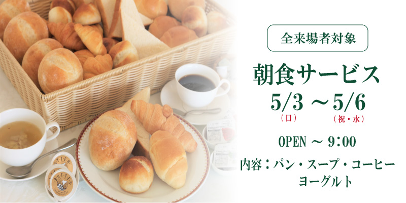 【朝食サービス】5月3日(日)~5月6日(祝・水)