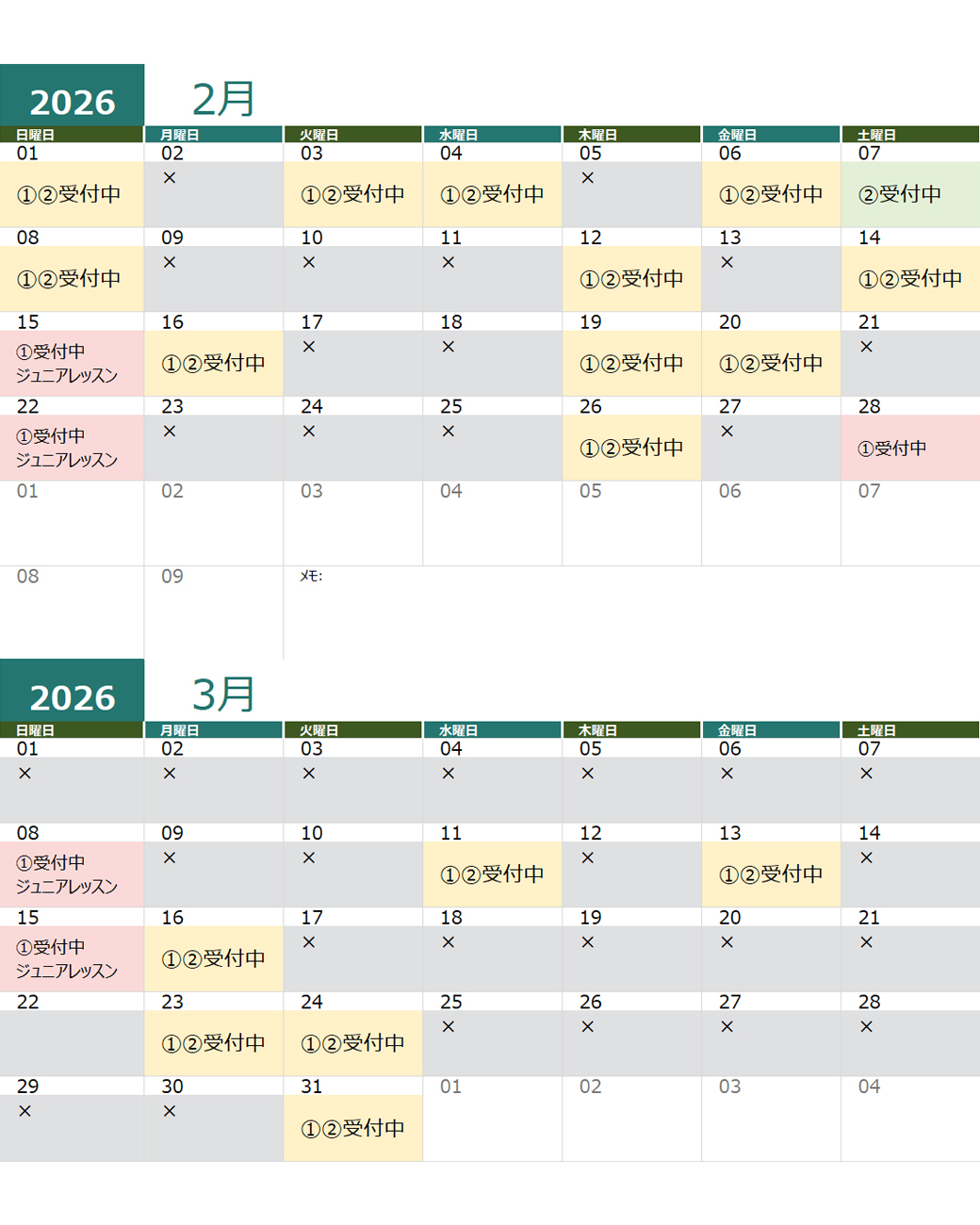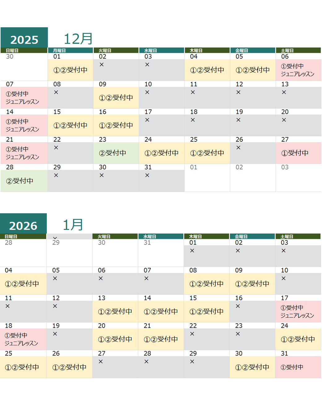 ■備考 初回ご予約時はレッスン生登録が必要となります。 登録料 メンバー様 無料 ゲスト様 3,300円 キャンセル料 10,000円 (2日前16:00以降のキャンセル1名様につき)