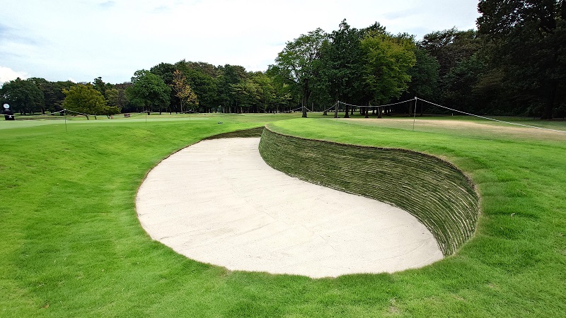 エコバンカーは、英国発の景観性と機能性を兼ね備えたバンカーです。特徴的な垂直なアゴはリンクス風の戦略性を演出し、プレーに緊張感と楽しさをもたらします。