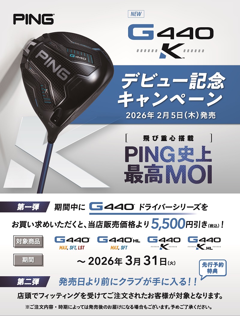 発売を記念いたしまして大好評のG440シリーズのドライバーも1本あたり5,500円(税込)のお値引きをさせていただきます。