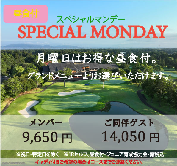 | 料金 | ●太平洋クラブ・アソシエイツ会員:9,650円 ●WEBSHOT会員・ご同伴ゲスト :14,050円 (1Rセルフプレー・昼食付・ゴルフ場利用税・消費税・ジュニア育成協力金込) |
