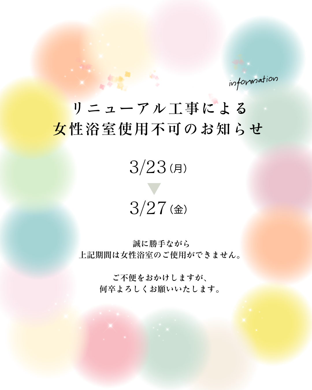 女性浴室リニューアル工事に伴う使用不可について