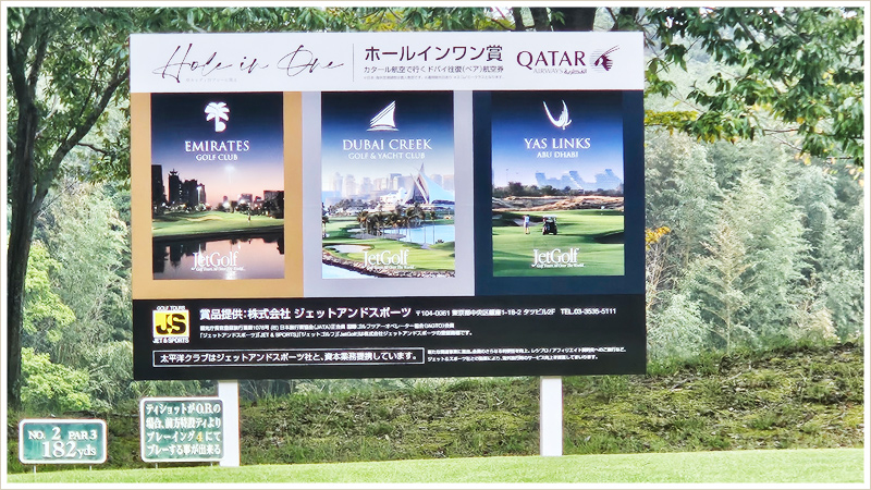 この度、2番ホールのPar3にてホールインワンを達成すると、ホールインワン賞として(株)ジェットアンドスポーツ様より