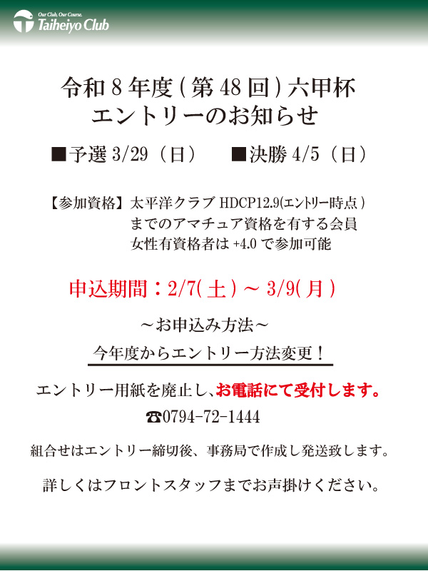 令和8年度(第48回)六甲杯エントリーのお知らせ