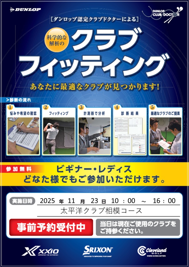 11月23日(日)|2025 ダンロップ認定クラブドクターによるクラブフィッティング会
