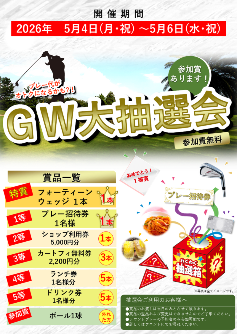 5月4日(月祝)~5月6日(水祝) l 2026 GW大抽選会⛳