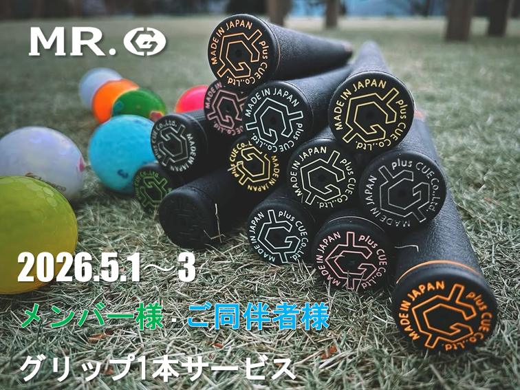 対象期間にご来場いただいたメンバー様とご同伴者様にはMR.Gのグリップを1本サービスいたします!