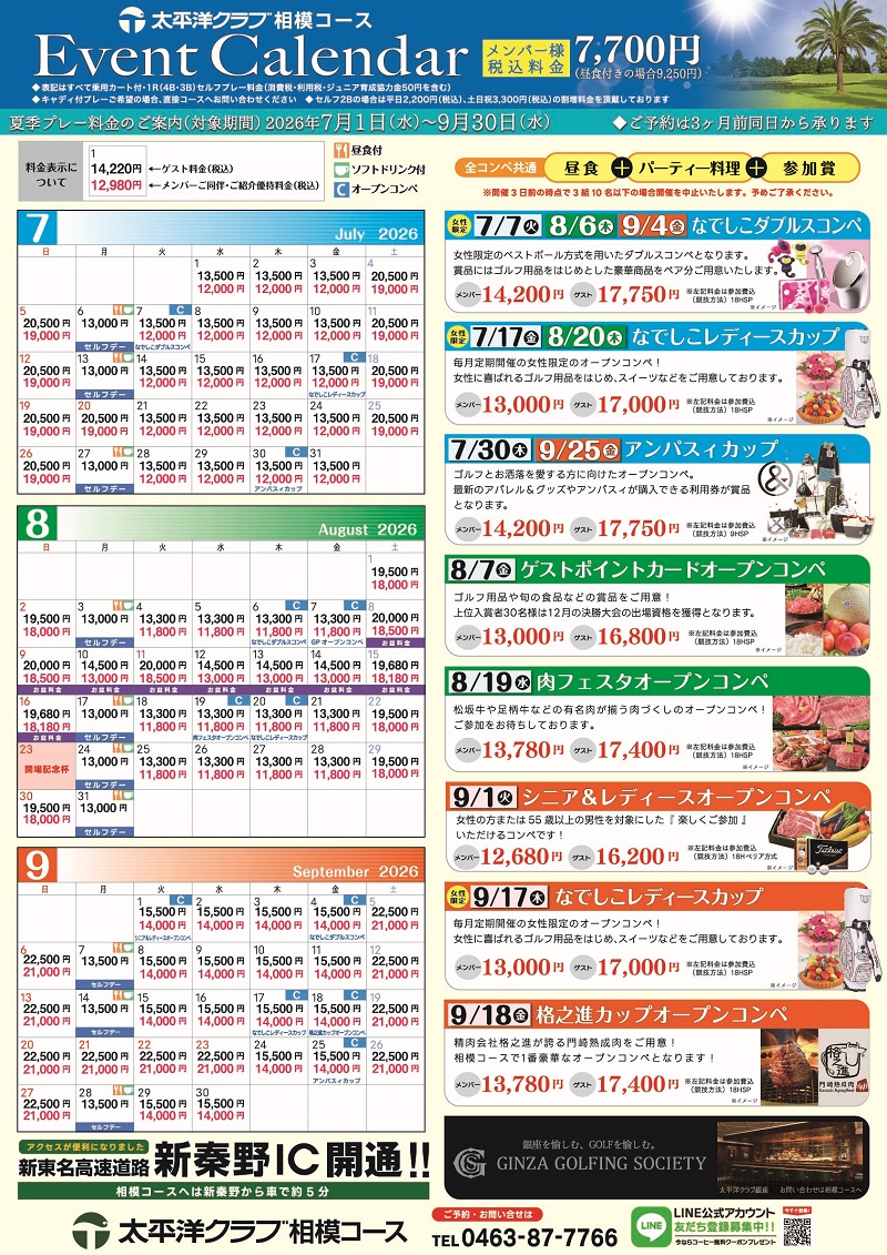 ≪ご予約・お問合せ≫TEL 0463-87-7766 相模コースLINE公式アカウント→