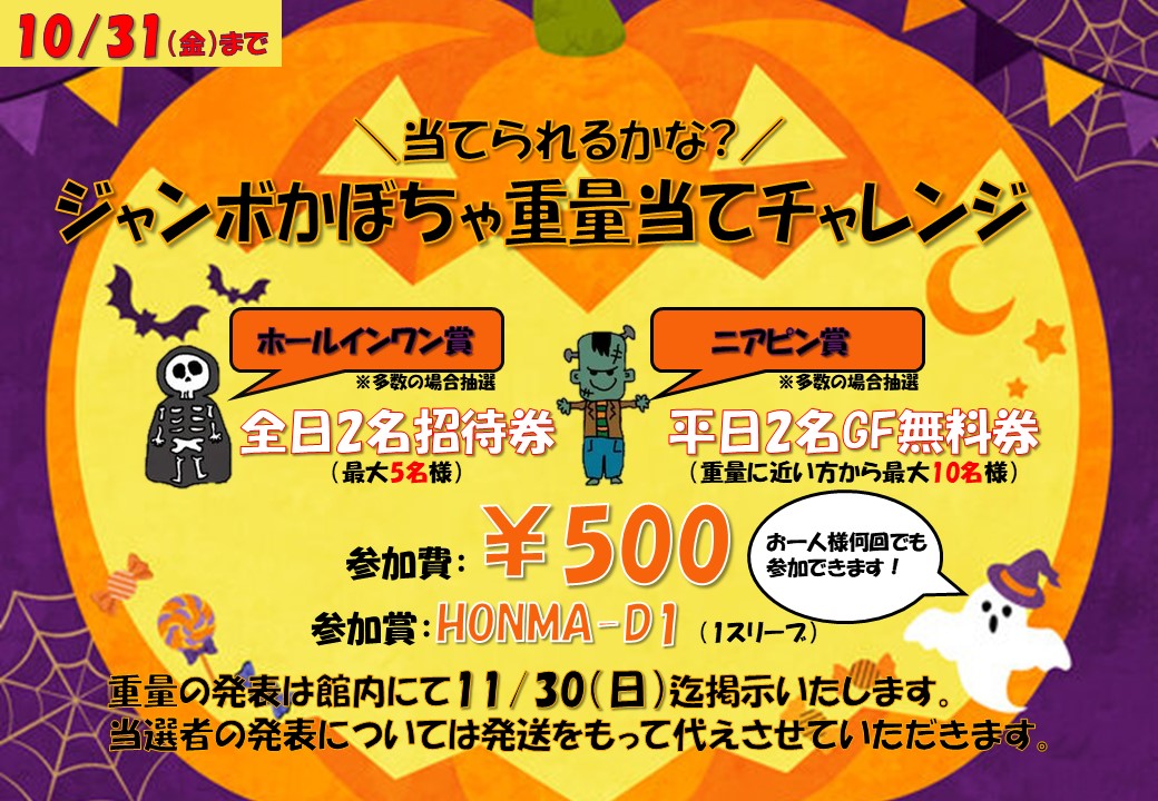 大洗シャーウッドコースにジャンボかぼちゃが登場!10/14(火)~10/31(金)までのハロウィーン期間限定イベントです。重量を当てて豪華賞品をゲットしてください!