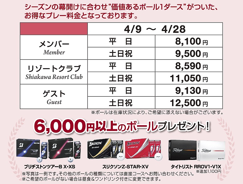 | プラン名 | オープニング料金(ボール1ダース付) |