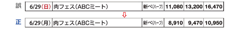 オープンコンペ「肉フェス(ABCミート)」の曜日・料金を下記の通り訂正させていただきます。