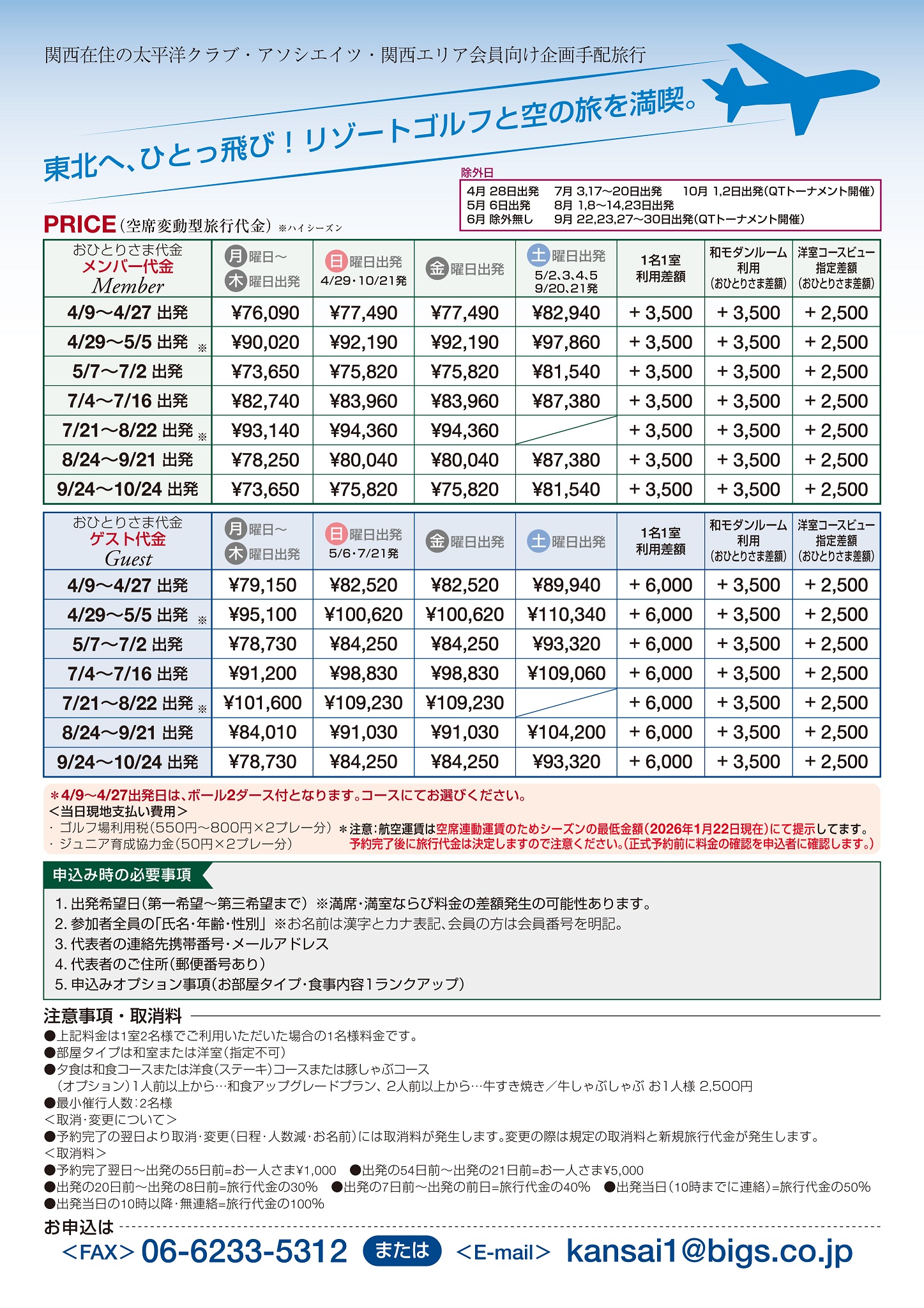 お問い合わせ:ビッグホリデー関西支店 06-6233-5311 田中・石田