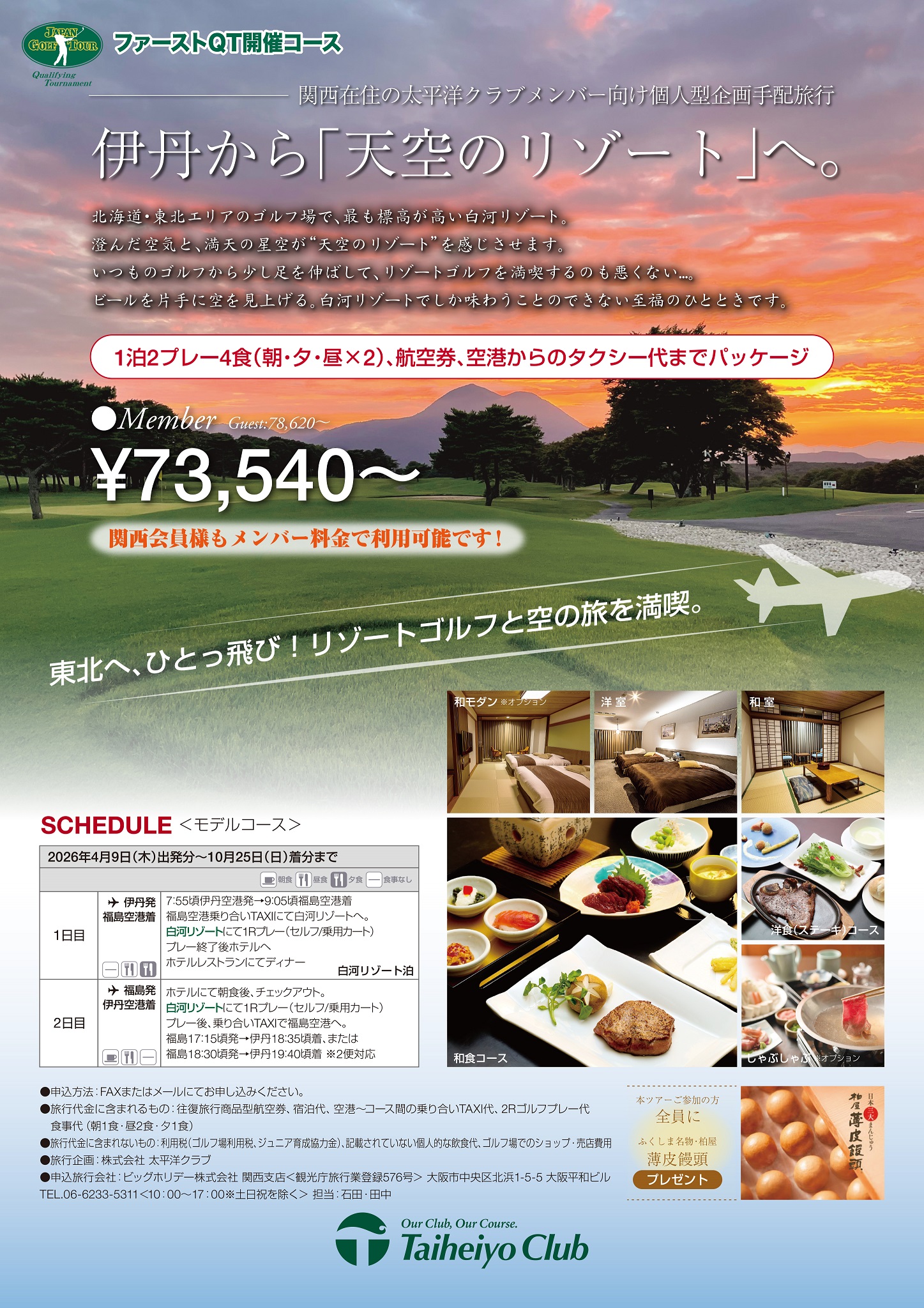 関西在住メンバー様向け 白河リゾート(1泊2R4食・航空券付)プラン