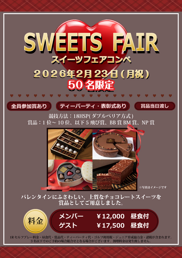 | 備考 | 全員参加賞あり! プレー後ティーパーティー・表彰式がございます。 |