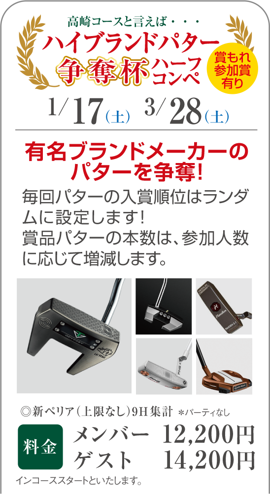 コンペに関するご質問等は、お手数ではございますが各コースへお電話にてお問い合わせください。