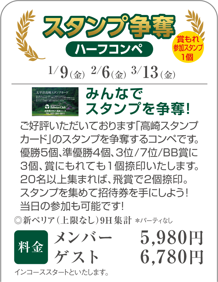 コンペに関するご質問等は、お手数ではございますが各コースへお電話にてお問い合わせください。