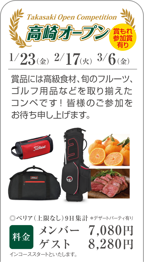 コンペに関するご質問等は、お手数ではございますが各コースへお電話にてお問い合わせください。