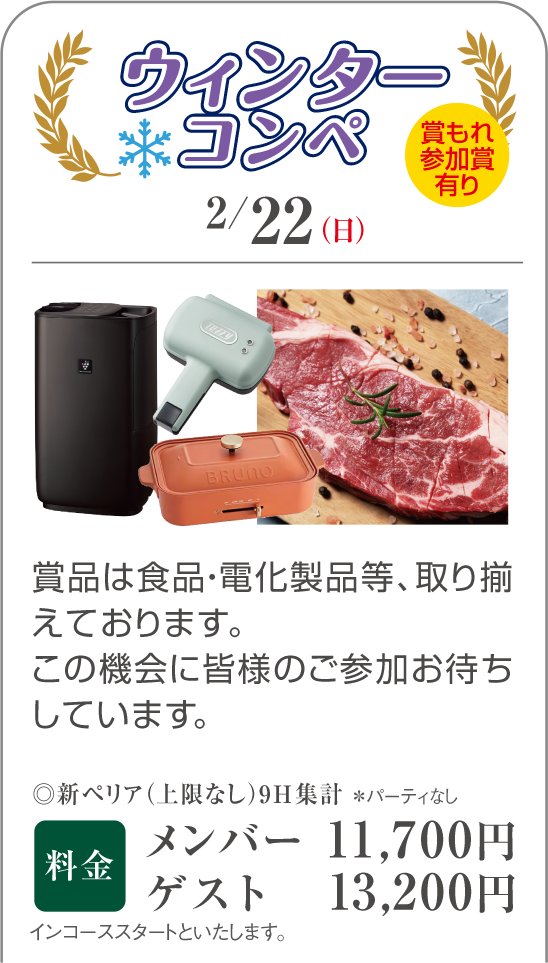 コンペに関するご質問等は、お手数ではございますが各コースへお電話にてお問い合わせください。