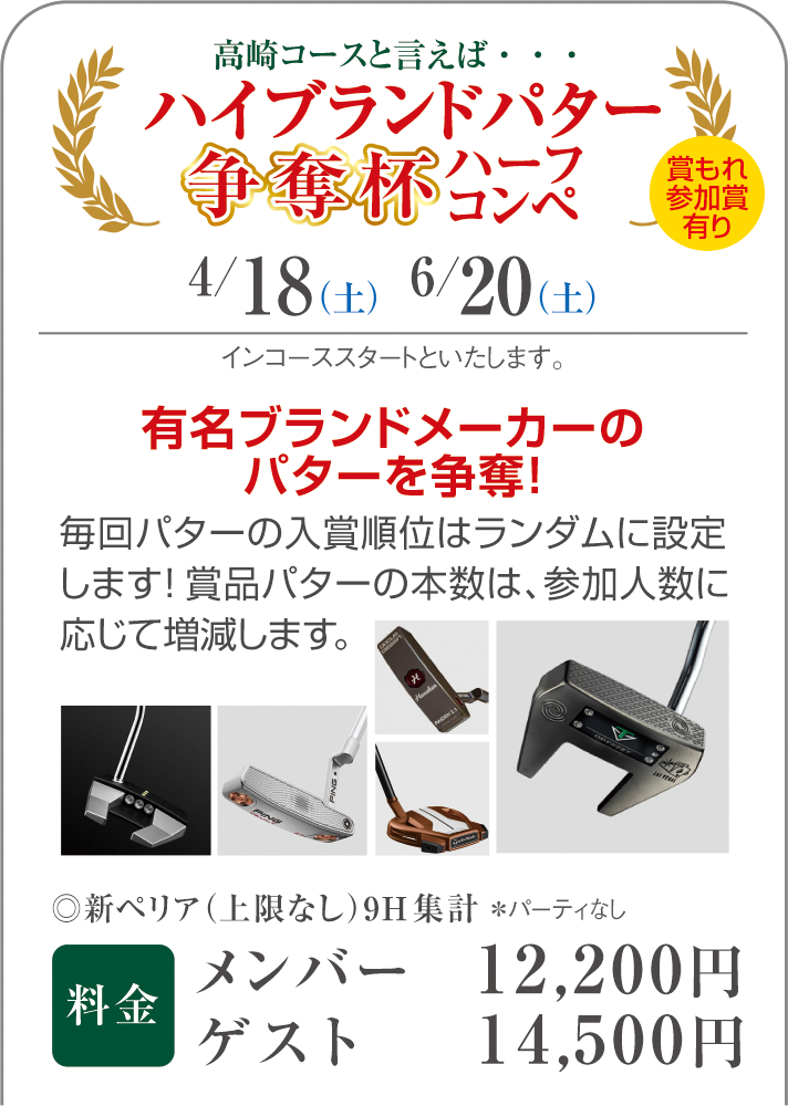 コンペに関するご質問等は、お手数ではございますが各コースへお電話にてお問い合わせください。