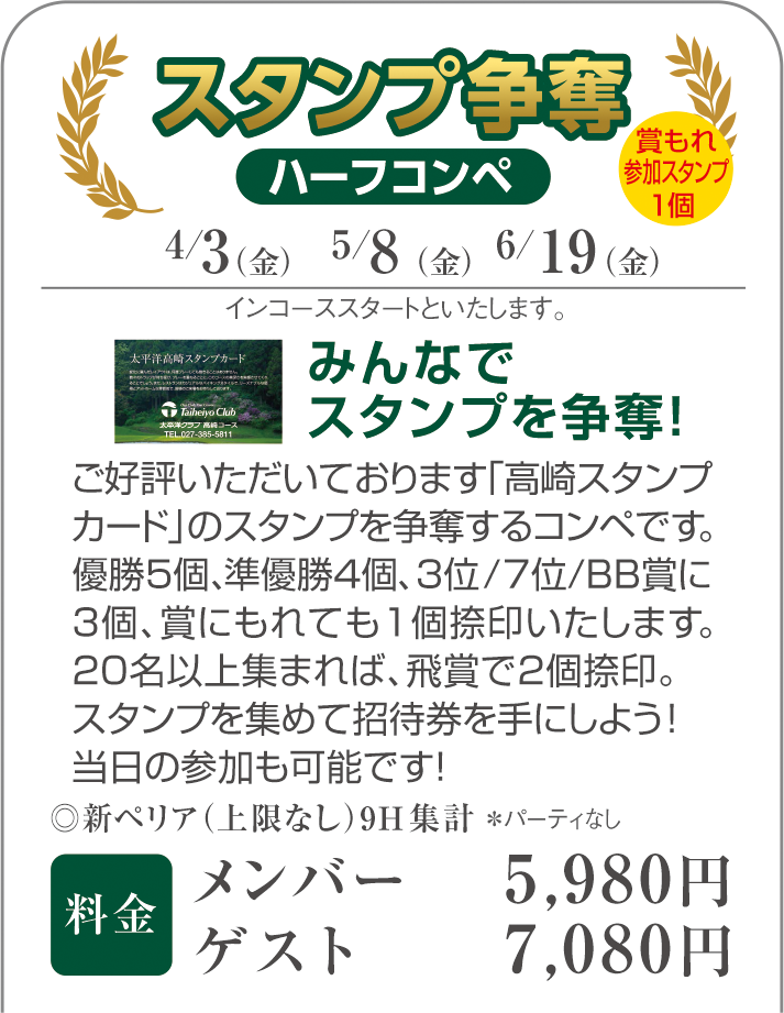 コンペに関するご質問等は、お手数ではございますが各コースへお電話にてお問い合わせください。