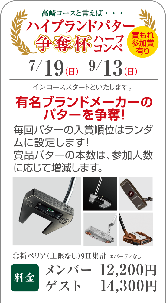 コンペに関するご質問等は、お手数ではございますが各コースへお電話にてお問い合わせください。
