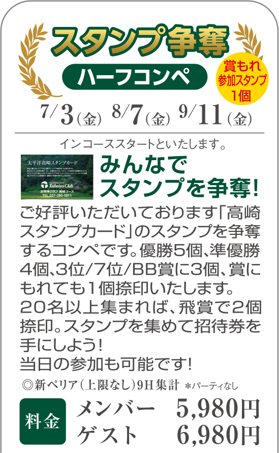 コンペに関するご質問等は、お手数ではございますが各コースへお電話にてお問い合わせください。