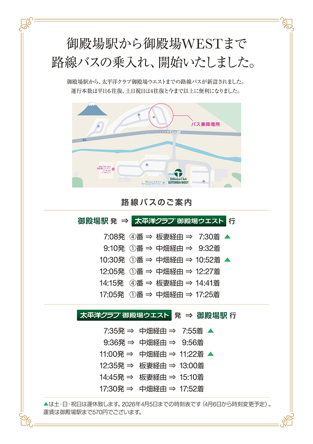 御殿場駅より太平洋クラブ御殿場ウエストまでの路線バスが開設されました。