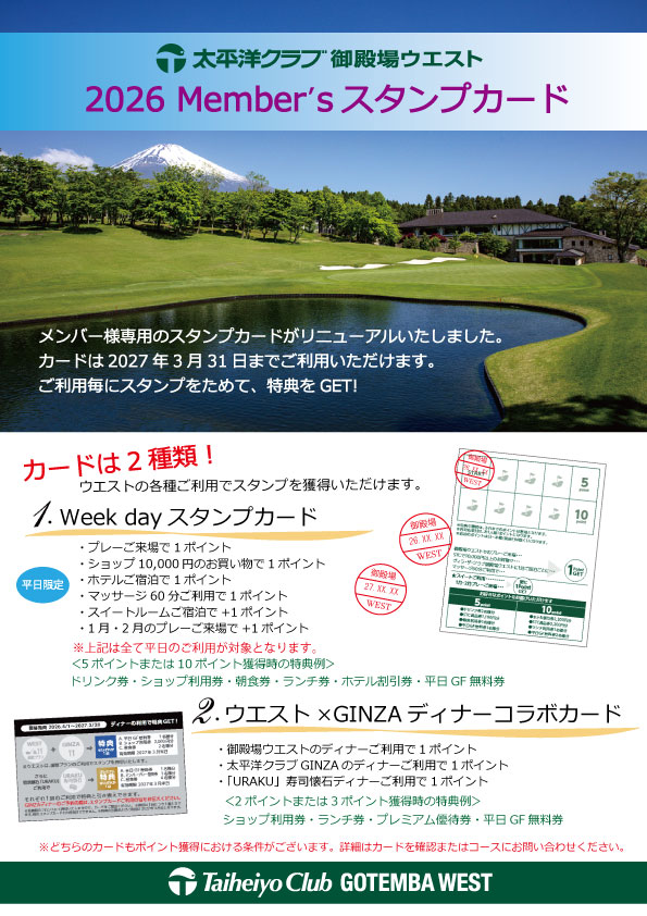 【御殿場ウエスト】2026 Member's スタンプカードのご案内