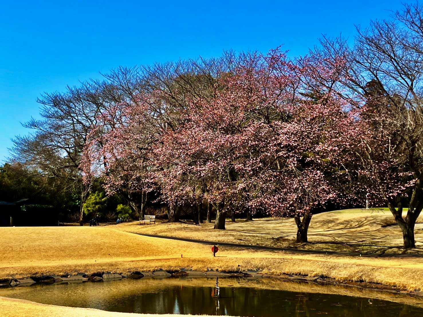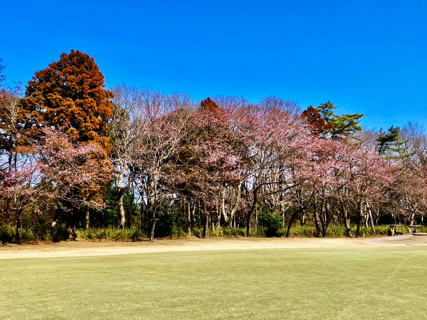 淡いピンク色の桜がコースを彩りはじめ、ラウンド中の景色も少しずつ春色へと移り変わっています。