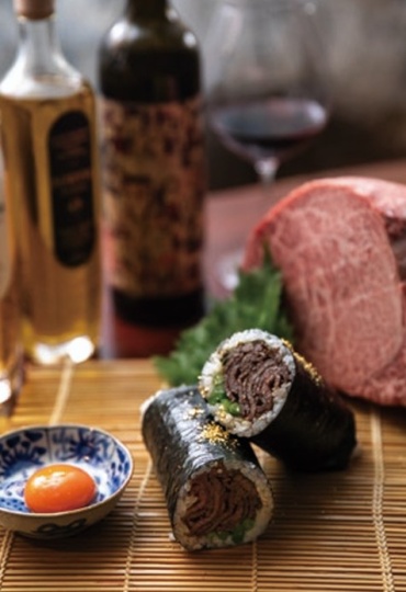 GINZAで提供する恵方巻は、海鮮ではなく山口県岩国の幻の和牛“高森和牛”でお作りします。