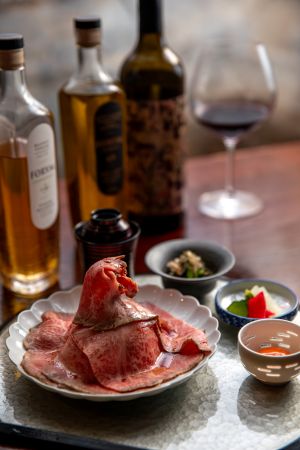 和牛のサーロインをマリネしたのち、低温で5時間火を入れた、とろけるお肉をご堪能ください。