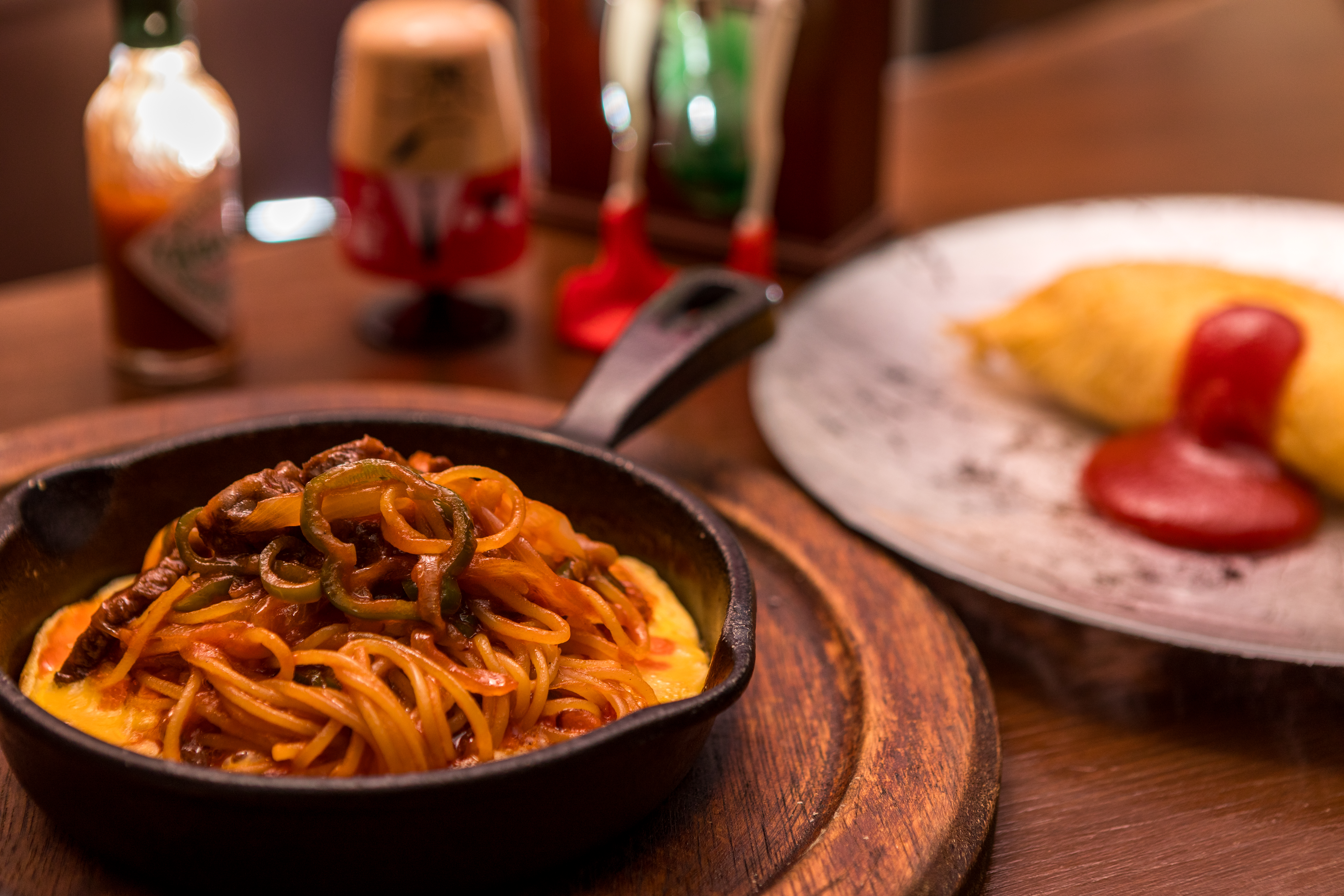 ◇ナポリタン ¥1,320 ◆鉄板焼ハンバーグ ¥2,200